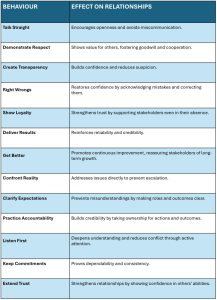 Table 1: Behaviours That Build Trust